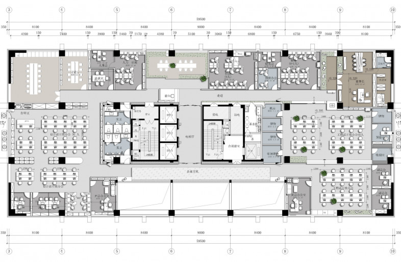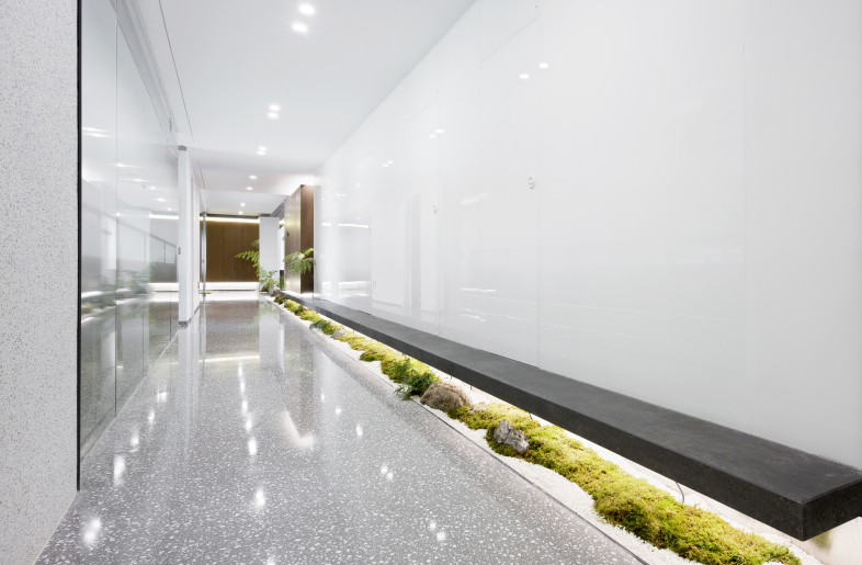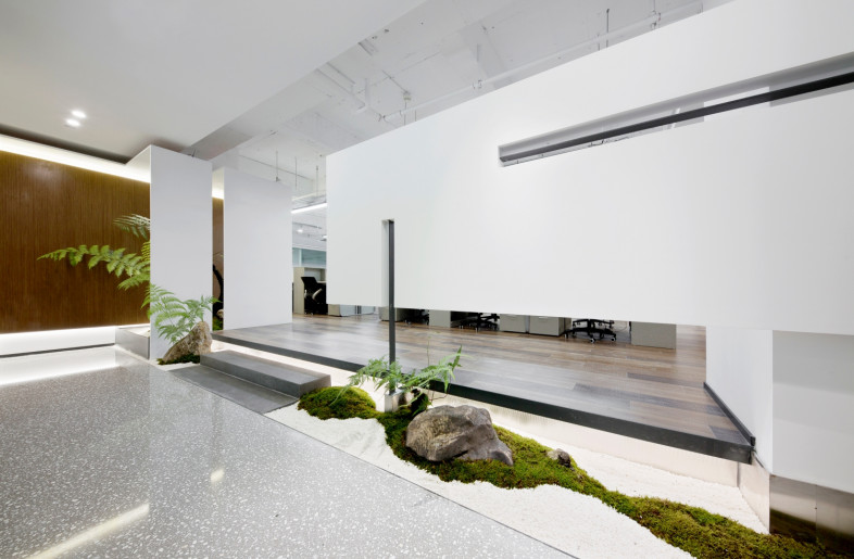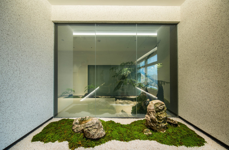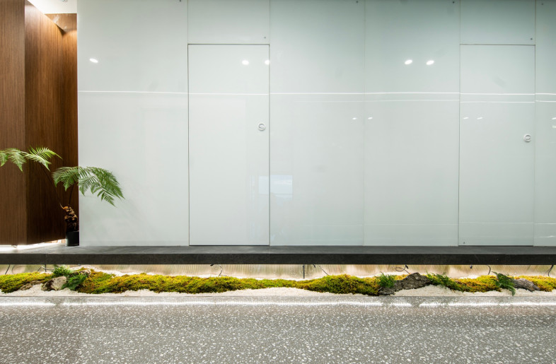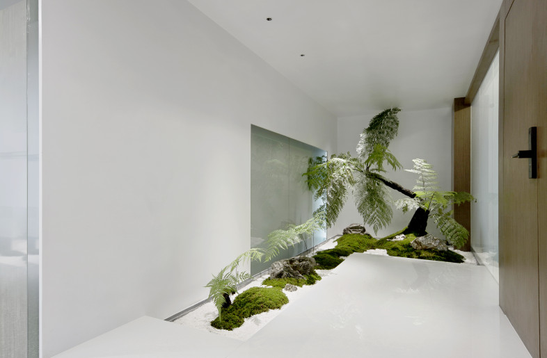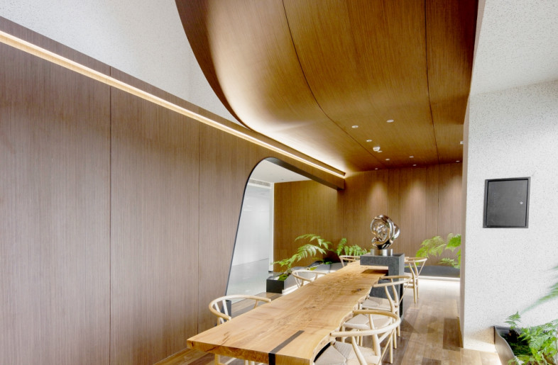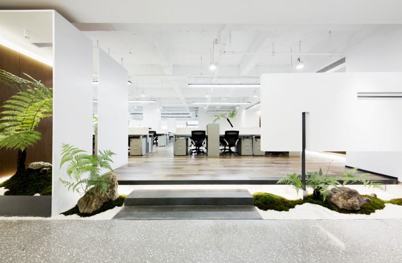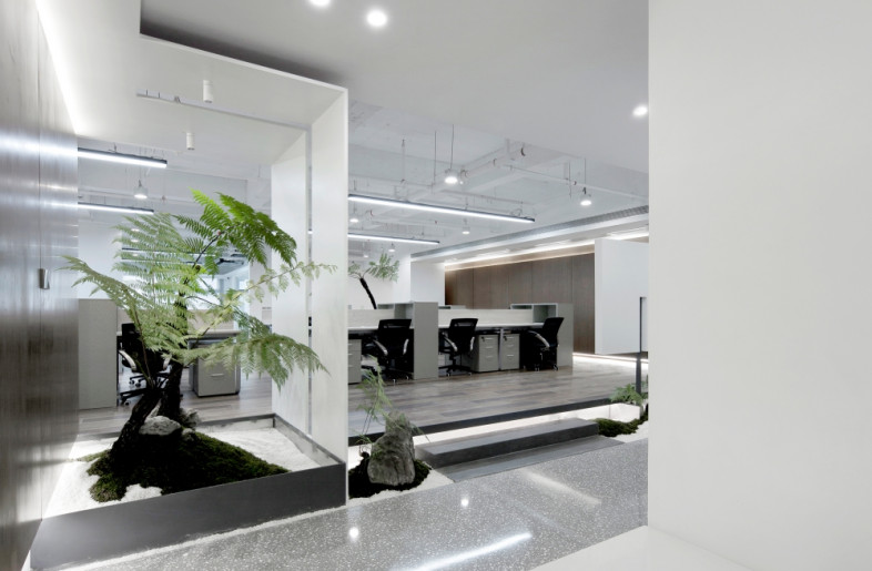 When you first enter the office area, you will be filled with eyes full of bright green. The reception area is surrounded by a green shade, in where the semi-arc wall design makes the reception space open and independent, and arc ceiling sockets above the space makes full use of the advantage of lifting design to make the space more flexible. The overall office space mainly use white and burlywood as the main colour, and the green moss and ferns are integrated into every corner of the space. Each area is flexibly divided and connected by a box-shaped space block, making it a whole and private. When you walk here, it's like walking into a secret forest world.