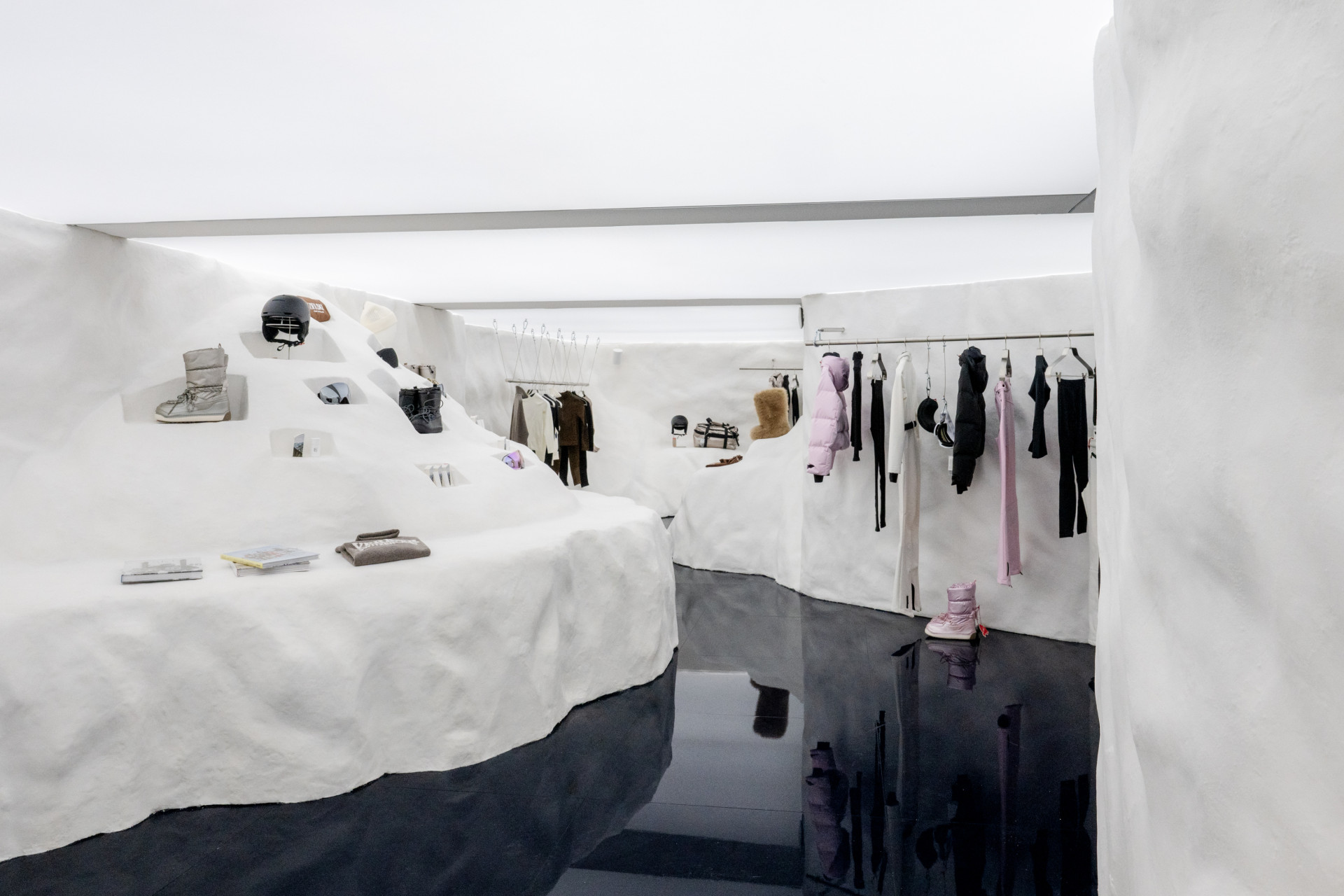 Designed to showcase Zara’s ski collection, this project was conceived as an immersive space where nature — and more specifically the glacial world — served as the primary source of inspiration. The organic forms of icebergs, shaped by the flow of glacial water, informed the design of the structural elements within the space.