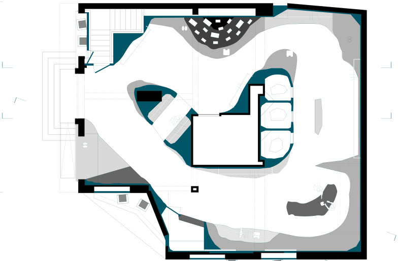 This formal approach gives the environment a sense of fluidity, both visually and functionally, while maintaining clean, elegant lines. The space gradually reveals itself along the visitor’s path, with various functions subtly integrated into the spatial journey.